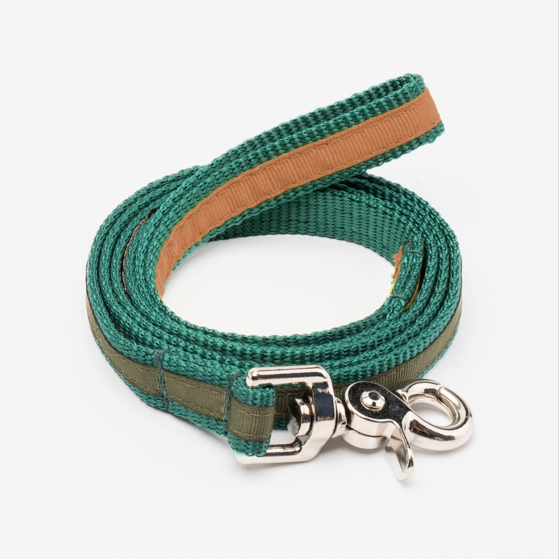 The leashes coordinate with our two-tone collection and our simple nylon collection.